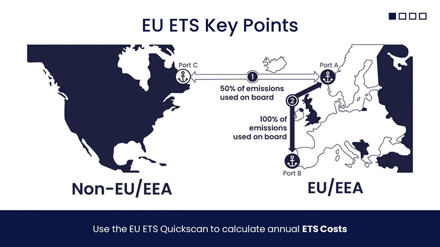 Bir gemi Avrupa Birliği limanına giriş yapıyor ve belli bir miktarda emisyon salıyorsa, bu salımın karşılığında yeterli miktarda karbon izni temin etmek ve teslim etmek zorundadır. Emisyon miktarı yakıt türü, seyir süresi ve gemi tipi gibi faktörlere göre hesaplanır.